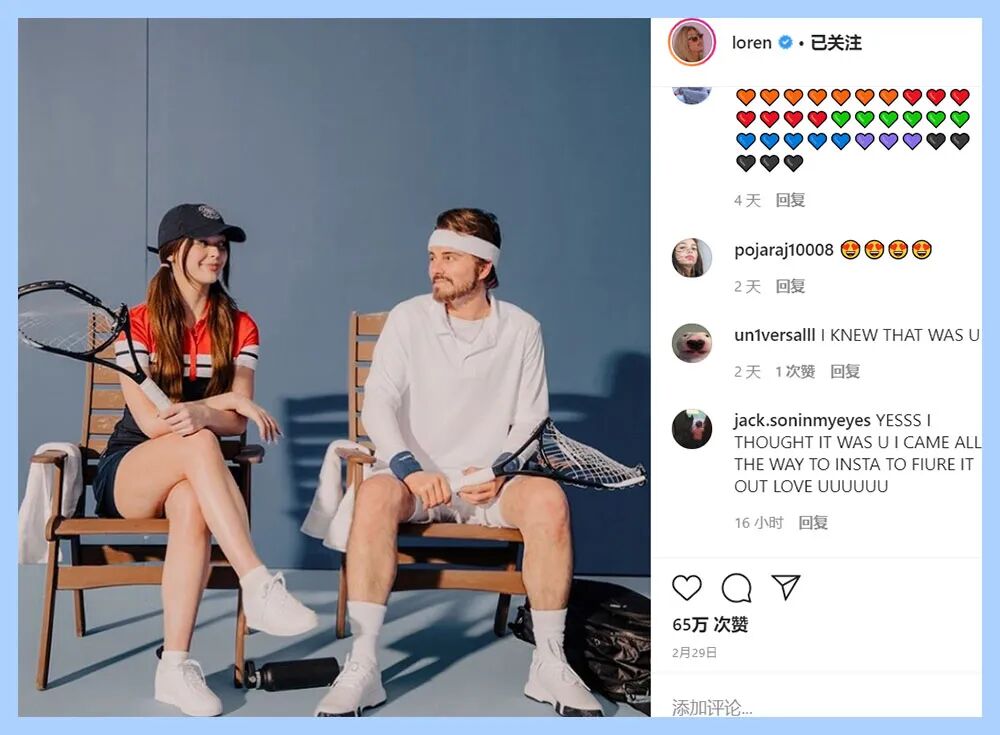 Loren在ins上坐拥1900万+粉丝,粉丝量可以与安妮·海瑟薇媲美。