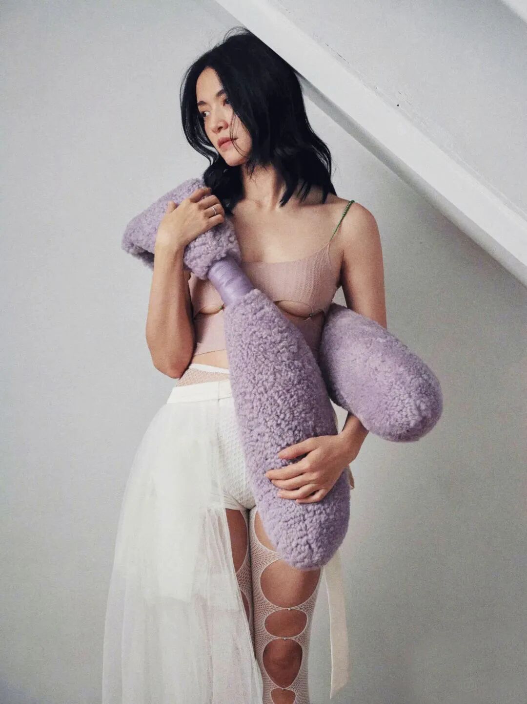用网纱材质塑造了不对称、不规则、不完美的RUi,有一点性感,有一点残缺感,还有一点脆弱感。而那些“破洞”间的“细丝”则是由珍珠串接而成,对她来说,珍珠是“母亲”,通过她让织物紧密连接,但仍然有一定距离。前几天蔡依林登上《红秀GRAZIA》就穿了一整套,天后表现还是一绝!Dua Lipa穿它上的杂志封面,女生看了都血脉膨胀!