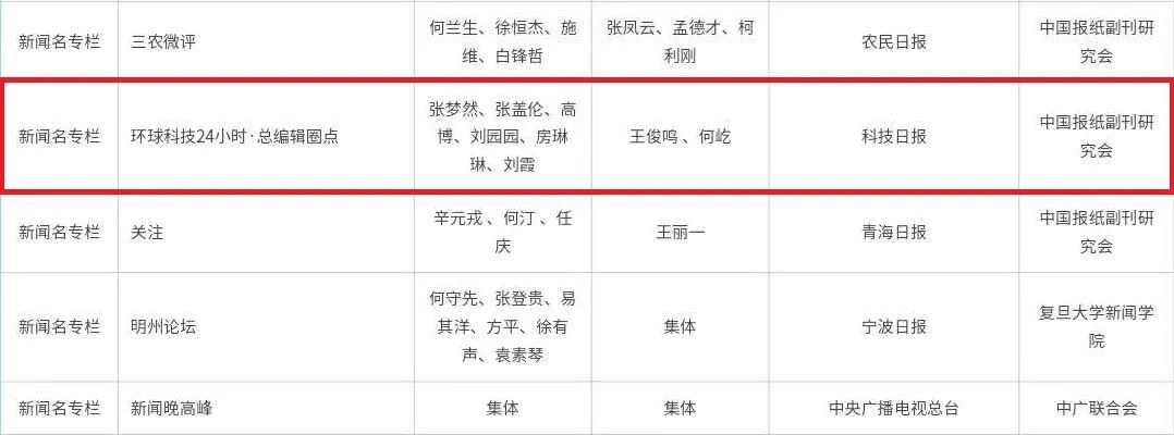 《科技日报》的新闻名专栏“环球科技24小时·总编辑圈点”昨天跻身第三十届中国新闻奖一等奖公示榜单。从2010年4月1日创办这个栏目到现在,已经十年有余。为打造这个栏目,我和《科技日报》的小伙伴们付出了无数心血和汗水。此前我的新闻作品已十次荣获中国新闻奖,但现在作为“编外”闻此喜讯,还是颇多感慨。