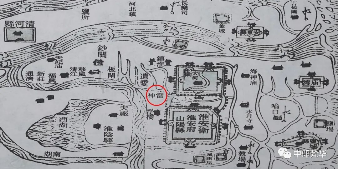 (明万历淮安府治地图,吴承恩家离雷神殿很近)