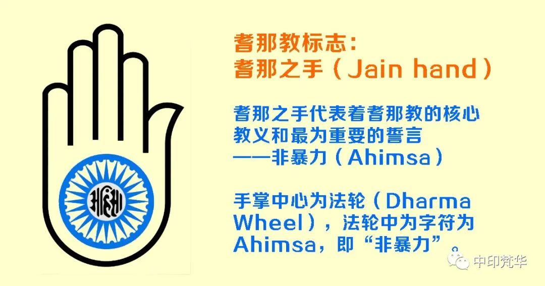 耆那教最为重要的教义莫过于严格反对杀生,即“非暴力(Ahimsa)”,这是每一个耆那教的僧侣和信徒都必须严格遵守的誓言,也是耆那教标志的核心内容。