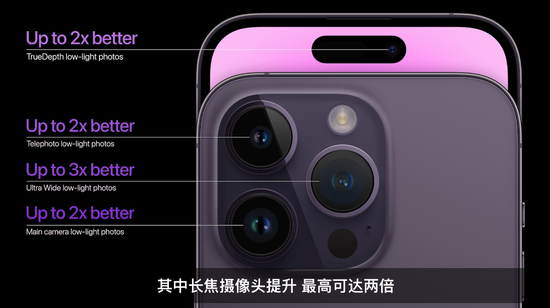 iPhone 14 Pro和14 Pro Max的屏幕分别为6.1和6.7,这款屏幕的峰值亮度是1600尼特,在户外最亮能到2000尼特,但这并不是它的关键提升。