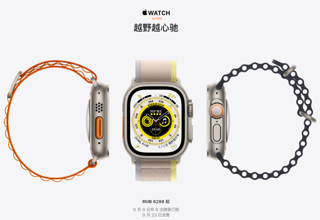 值得惊喜的是,Apple Watch首次推出Ultra版本,主要针对耐力和极限运动。钛金属表壳、蓝宝石玻璃表面,同时屏幕尺寸为目前最大。Apple Watch Ultra增加第二个扬声器,共三个麦克风,并增加新的橙色操作按钮,均已经配置蜂窝网络。新表的电池续航也增加到了36小时,是现在Apple Watch标称18小时的2倍,低功耗模式则能达到60小时。