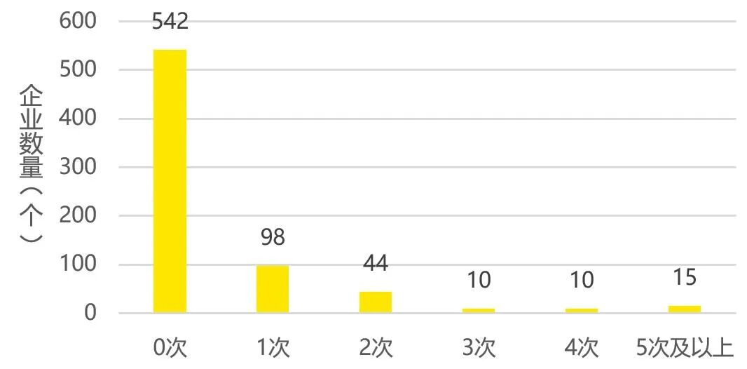 而以有效的发明专利(授权)和实用新型专利来看,在719家样本公司中仅有177家公司有专利自引用行为,专利自引用次数在5次及以上的公司仅有15家。