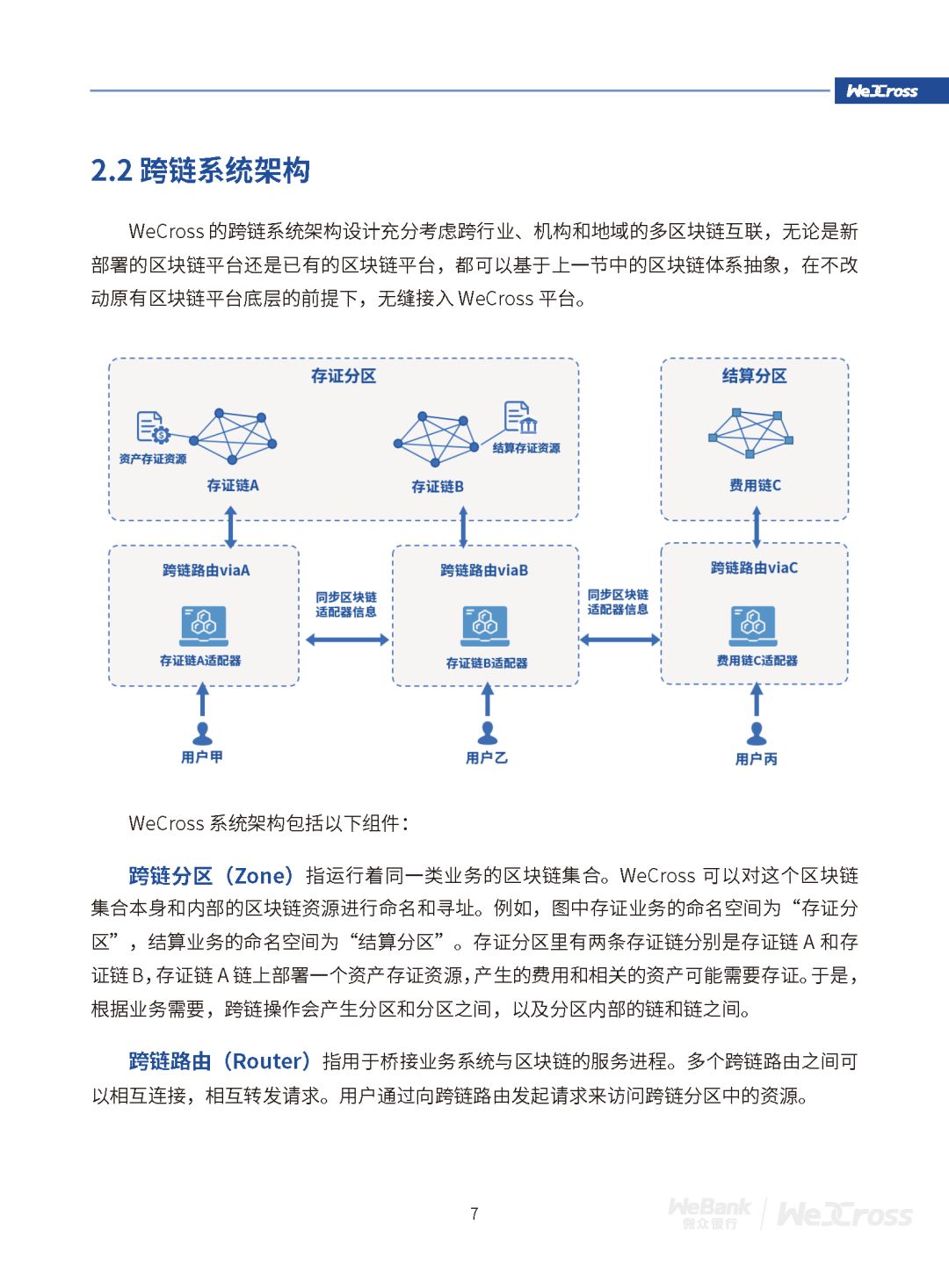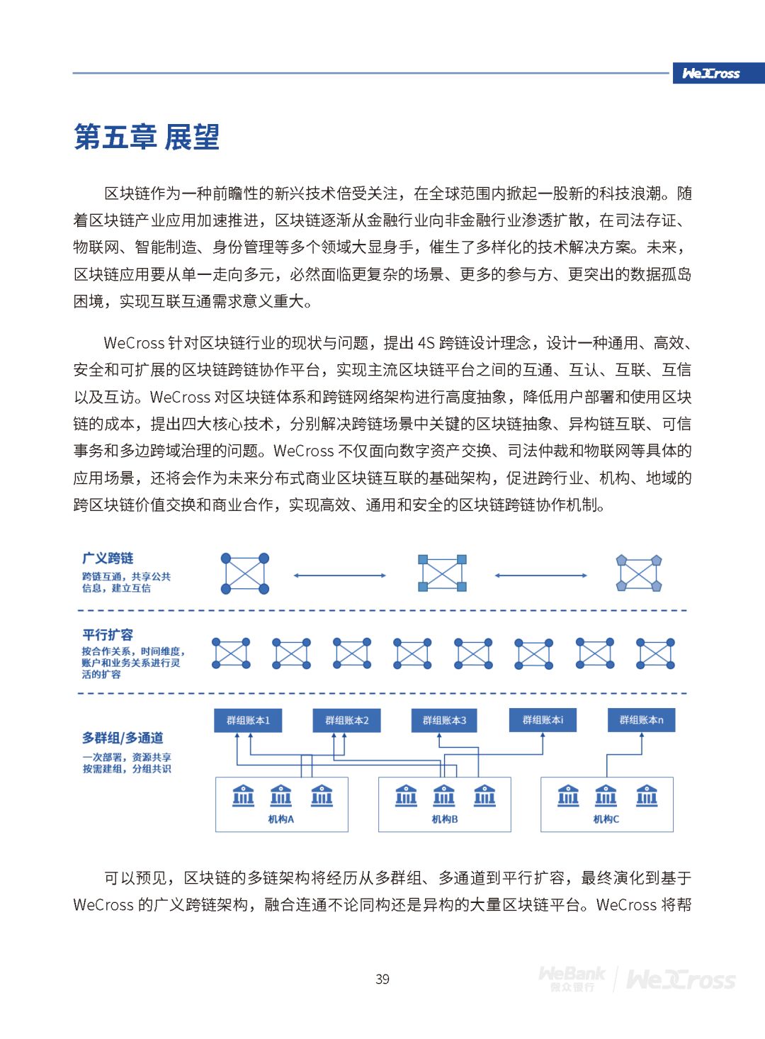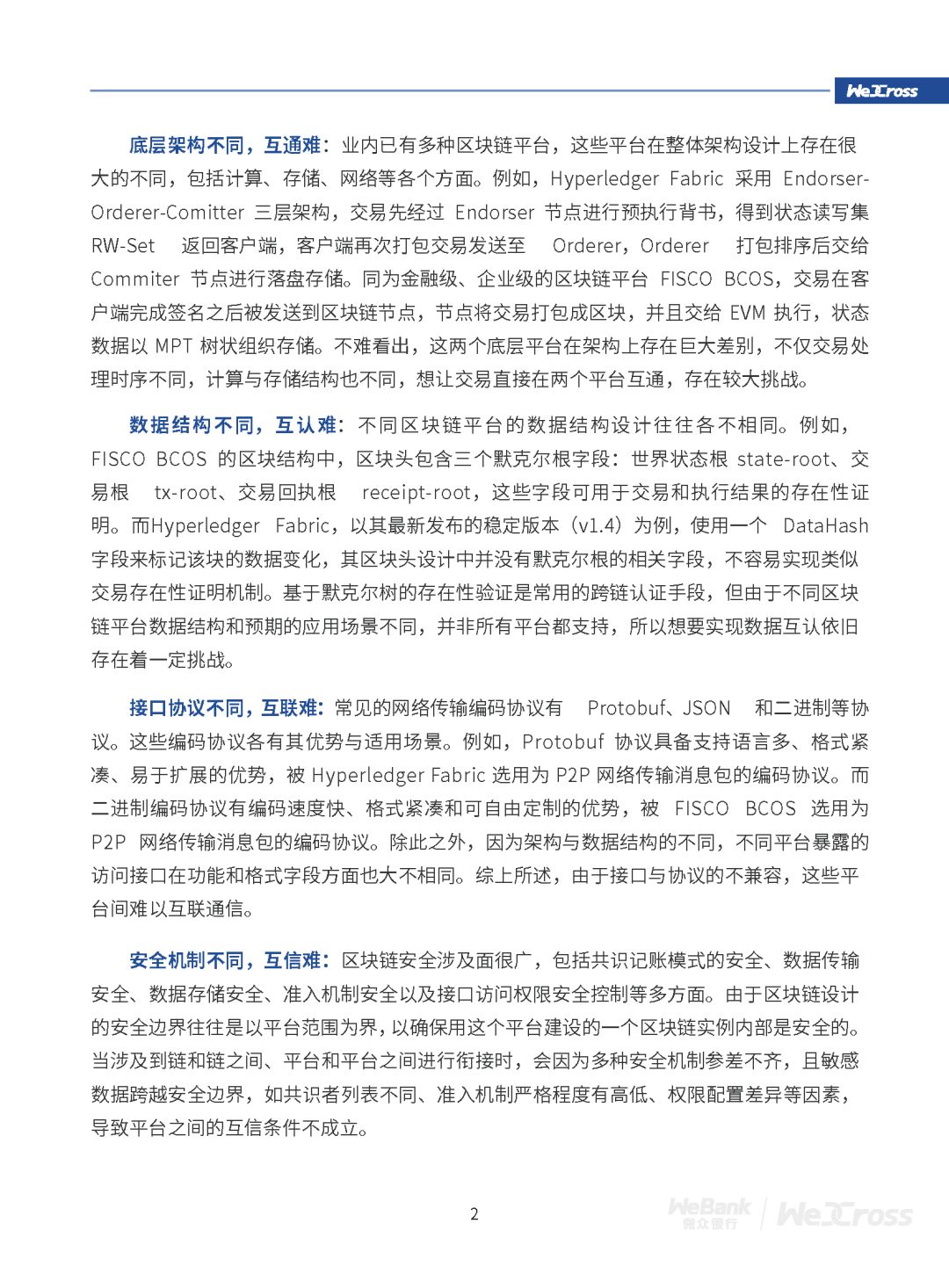 新成员命名WeCross,是一款区块链跨链协作平台,由微众银行区块链团队自主研发并完全开源。目前,WeCross已完成 v1.0.0-rc1 版本的开发与发布,支持市面上多种主流开源区块链,如 FISCO BCOS 、Hyperledger Fabric 等。
