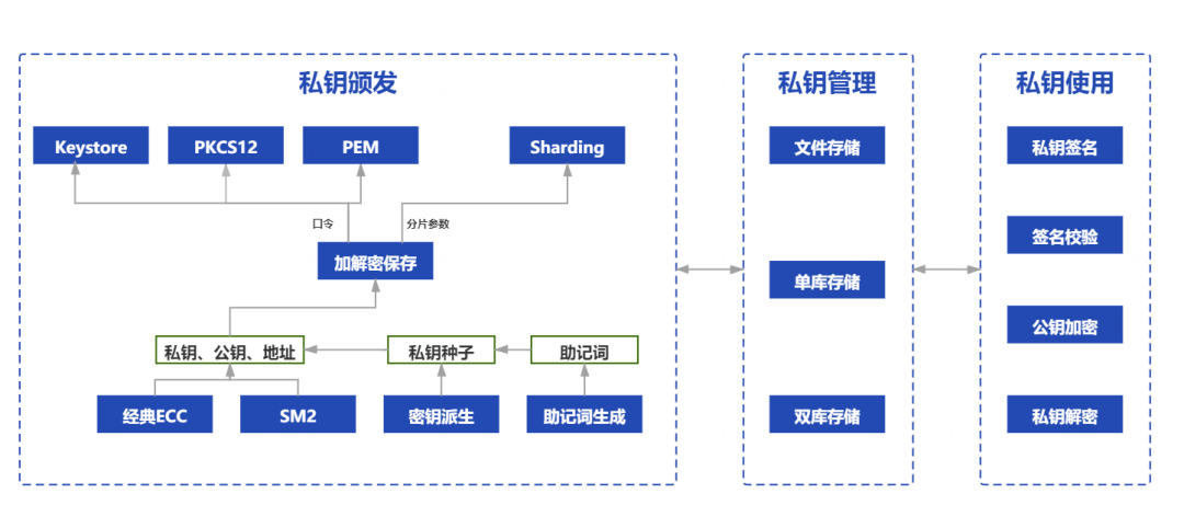 私钥管理组件提供了私钥的生成、保存、托管、使用的能力,覆盖私钥使用全生命周期。