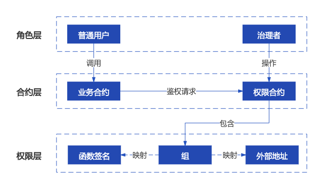 随着基于智能合约的区块链应用开发案例的涌现,各应用开发场景对智能合约权限的控制和分组的需求也越来越迫切。权限治理组件提供基于智能合约的区块链账户、合约函数等粒度的权限控制。