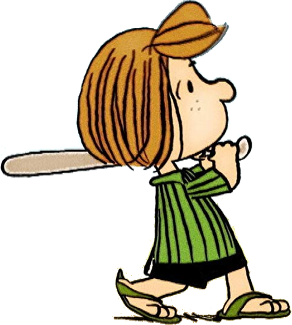 在《花生漫画》中,女性角色往往更强势和咄咄逼人。Peppermint Patty 就是其中重要的一员,占据着漫画中最充满战士灵魂的投手丘,她总是顶着一头乱糟糟的头发,穿着一双拖鞋,从不适应少女时代的陈词滥调。