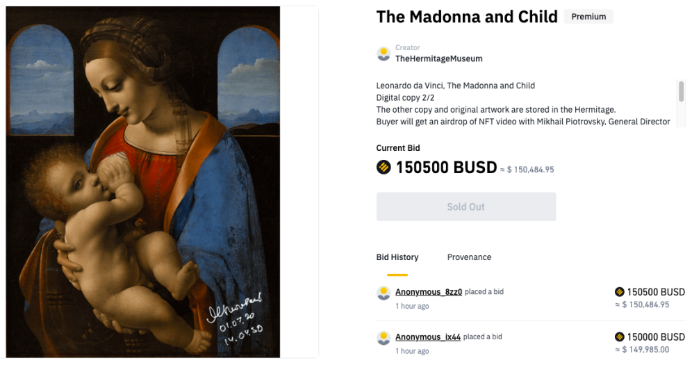 冬宫博物馆拍卖的 The Madonna and Child NFT