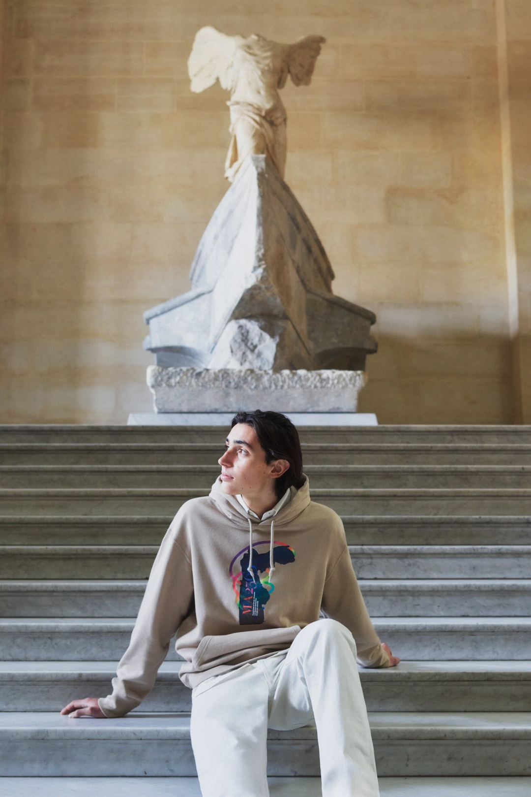 优衣库的卢浮宫合作系列,模特身上和身后都是萨摩色雷斯
