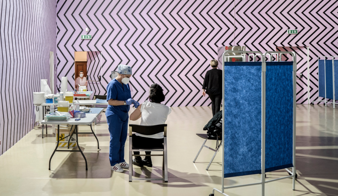 在“Art Helps”(艺术能帮忙!)的号召下,博物馆把自己的一个画廊辟为当地的疫苗接种中心。好消息是,打针的时候,你还能盯着瑞士艺术家克劳蒂亚·孔泰(Claudia Comte)的壁画来分心。