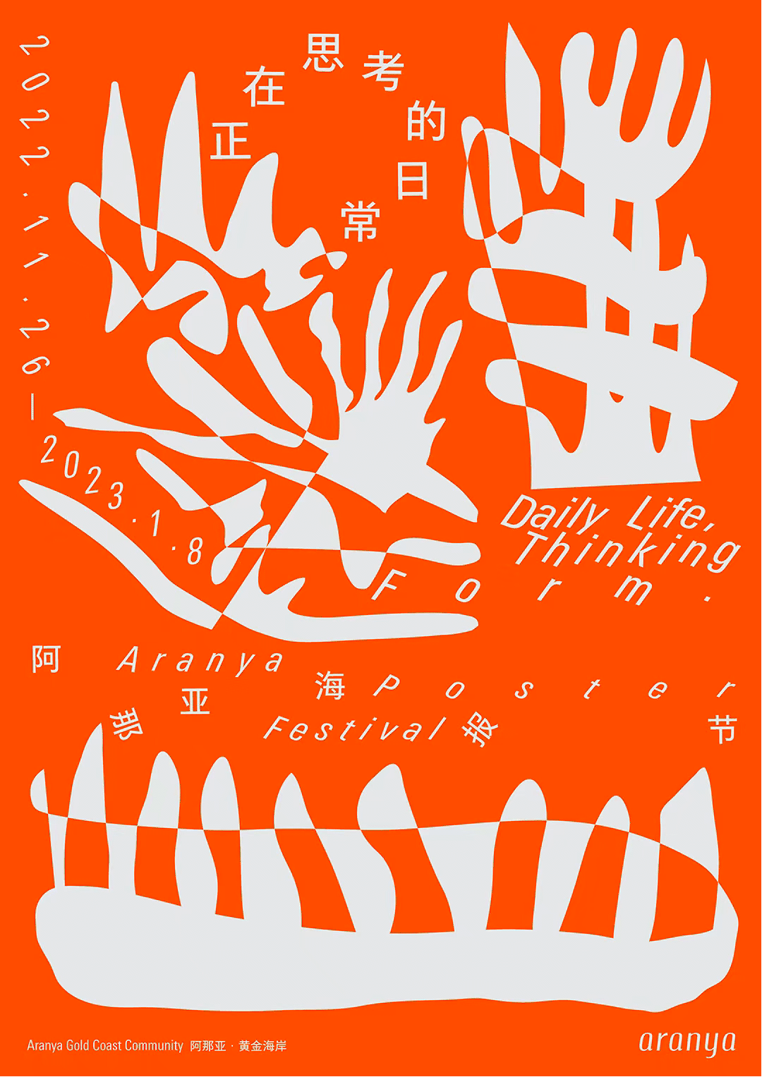 2022 阿那亚海报节(Aranya Poster Festival)已经开启。本届主题是“正在思考的日常”,阿那亚邀请包括 2 x 4Beijing、立入禁止、LAVA、702design、韩湛宁在内的众多知名工作室及个人创作者,用海报、墙绘、装置与数字艺术的形式,来回应当下最重要的个人或公共话题。整个园区变成了大型露天展馆,为冬天填上色彩,为双眼带来愉悦,也为大脑创造着思考的窗口。