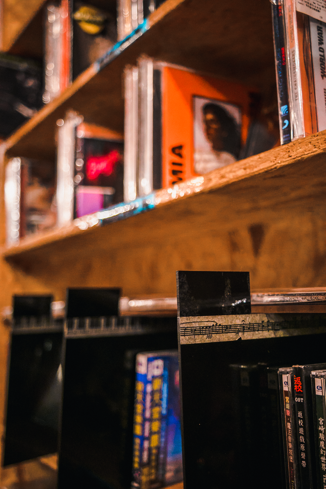 走进盲区的两位朋友刚刚也去了福声唱片,在那买了一张《伊豆的舞女》,然后去独音唱片挑选到 EVA 的原声蓝胶《One Last Kiss》,最终我们在盲区又见面了。