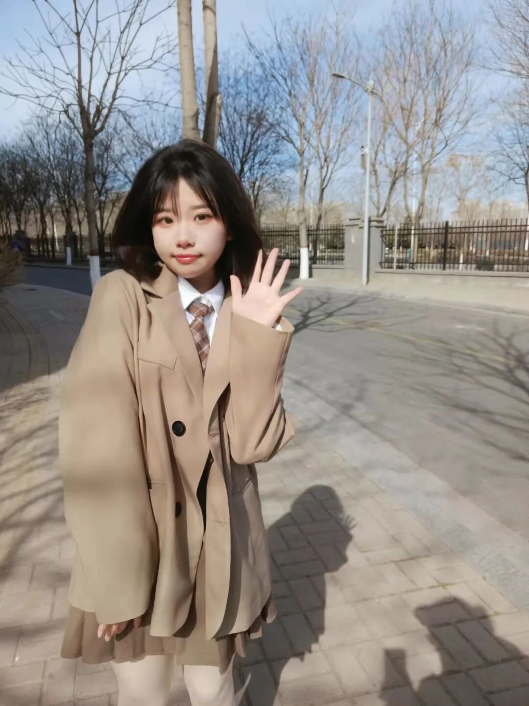 同色系jk加西装外套,迎着暖阳向光去,打开活力一天!