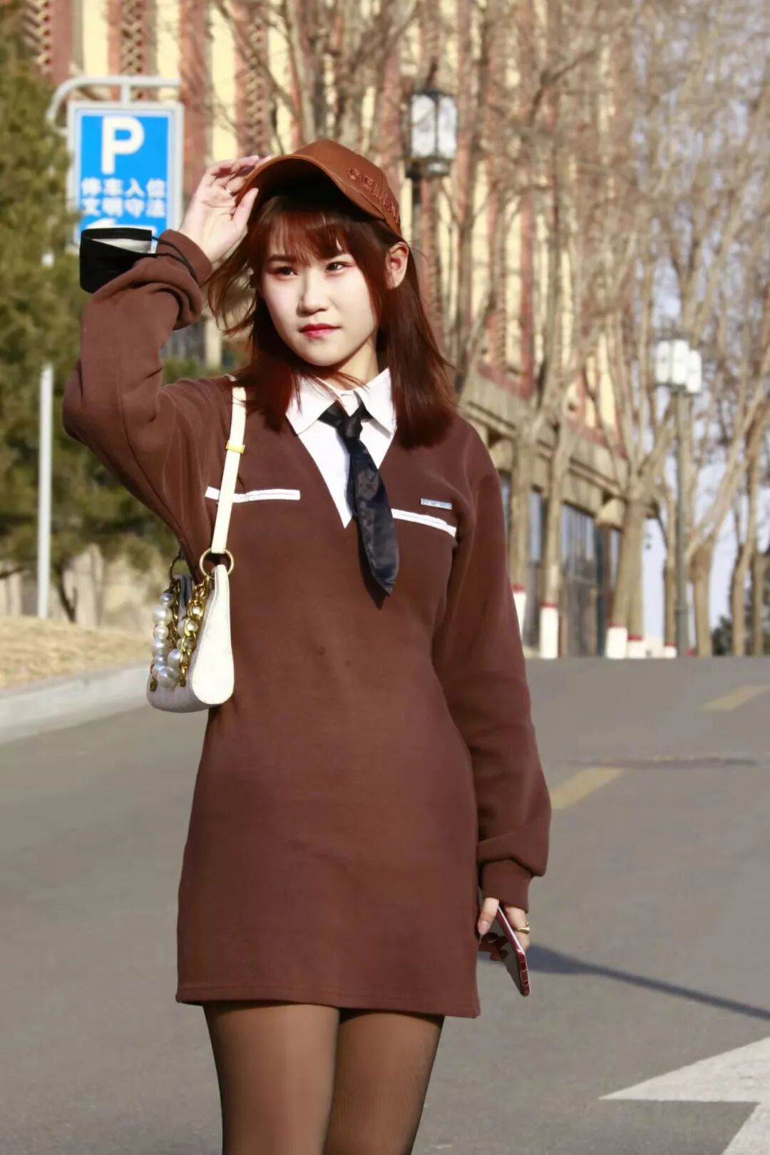 卡其色包身裙凸显个人魅力,白色的小挎包又填一丝优雅,卡其色贝雷帽有了几分活泼俏皮,这就是混搭的魅力。