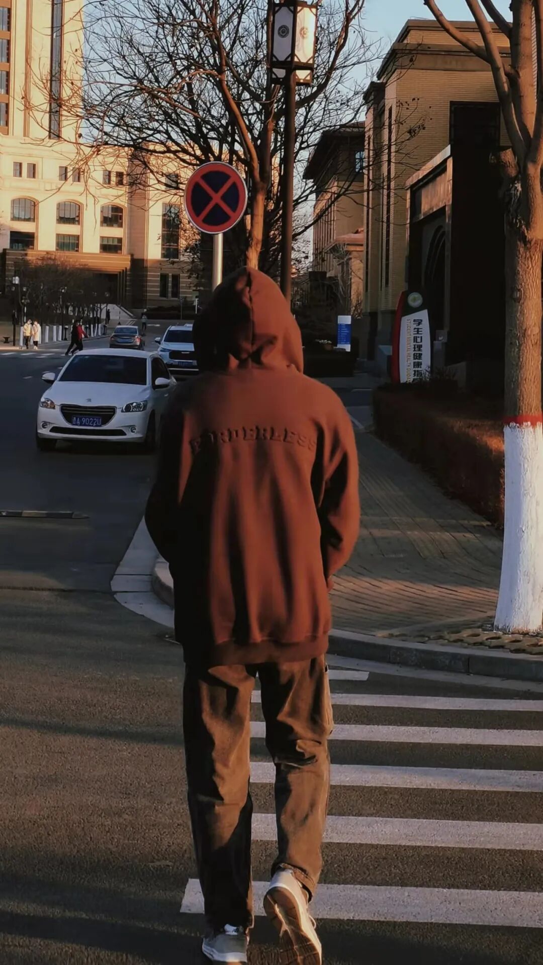 黑色卫衣与金色树叶相称,人间温柔大抵便是如此吧!