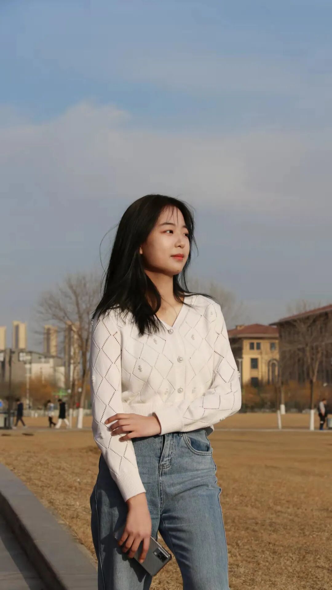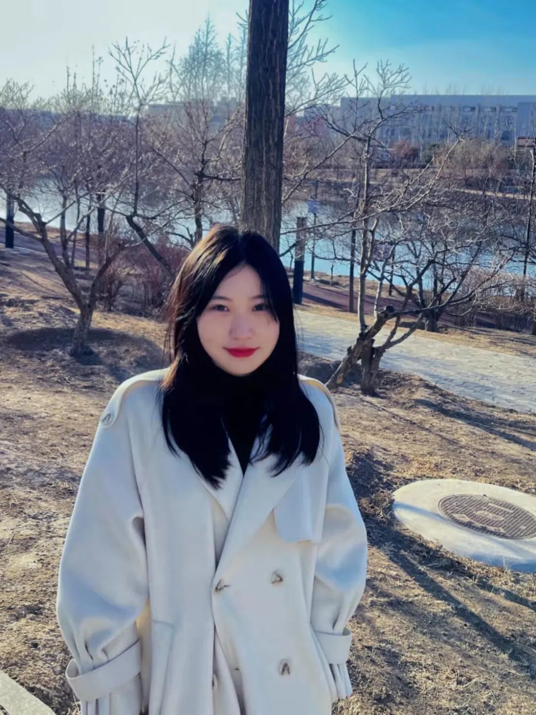 白色大衣,浅笑安然,此时阳光也静谧~