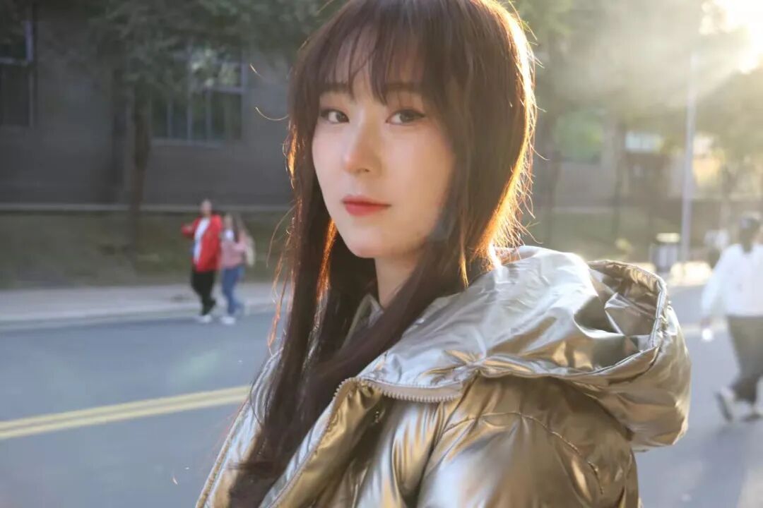 张扬的银色反光羽绒服,在阳光的照耀下更加璀璨。