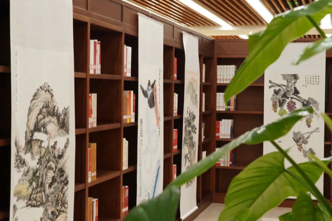 开展仪式结束后,郑强一行与师生一同参观展览,并与书画摄影作品作者和爱好者品鉴欣赏,交流互动。