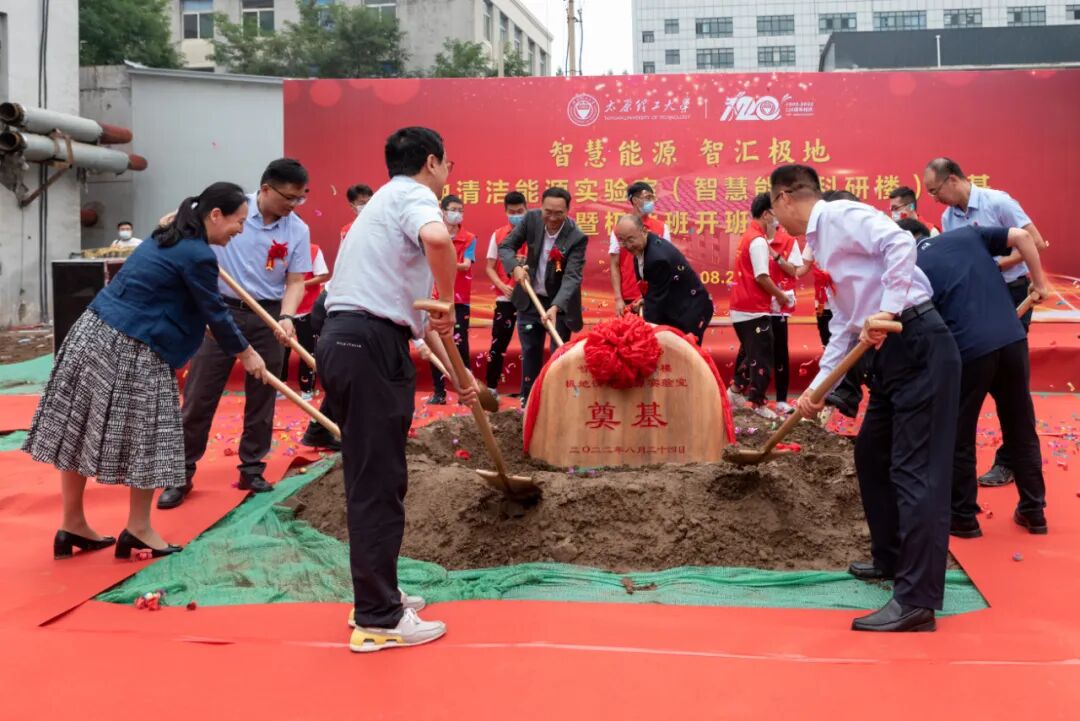 孙波宣布极地清洁能源实验室(智慧能源科研楼)奠基,与会领导共同为极地清洁能源实验室(智慧能源科研楼)培土奠基。