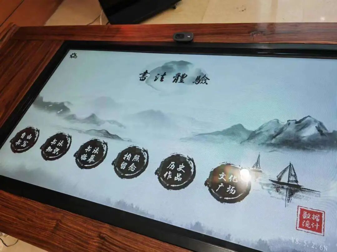 朗读亭对面的书法电子体验台,可以用旁边准备好的毛笔自由书写、临摹,还有打卡功能,用毛笔写下自己的名字,留下自己的照片,同学们可以尽情地来拍照留念~