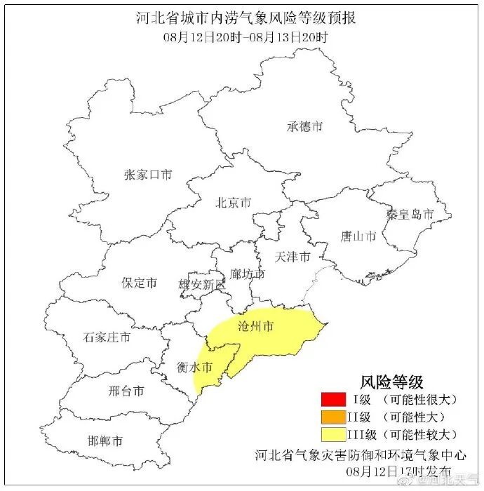 河北省气象灾害防御和环境气象中心2022年8月12日17时发布城市内涝气象风险等级预报