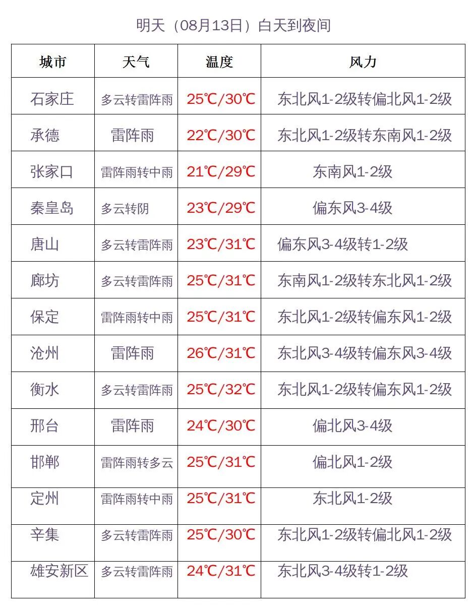 河北省气象台2022年08月12日17时发布天气预报: