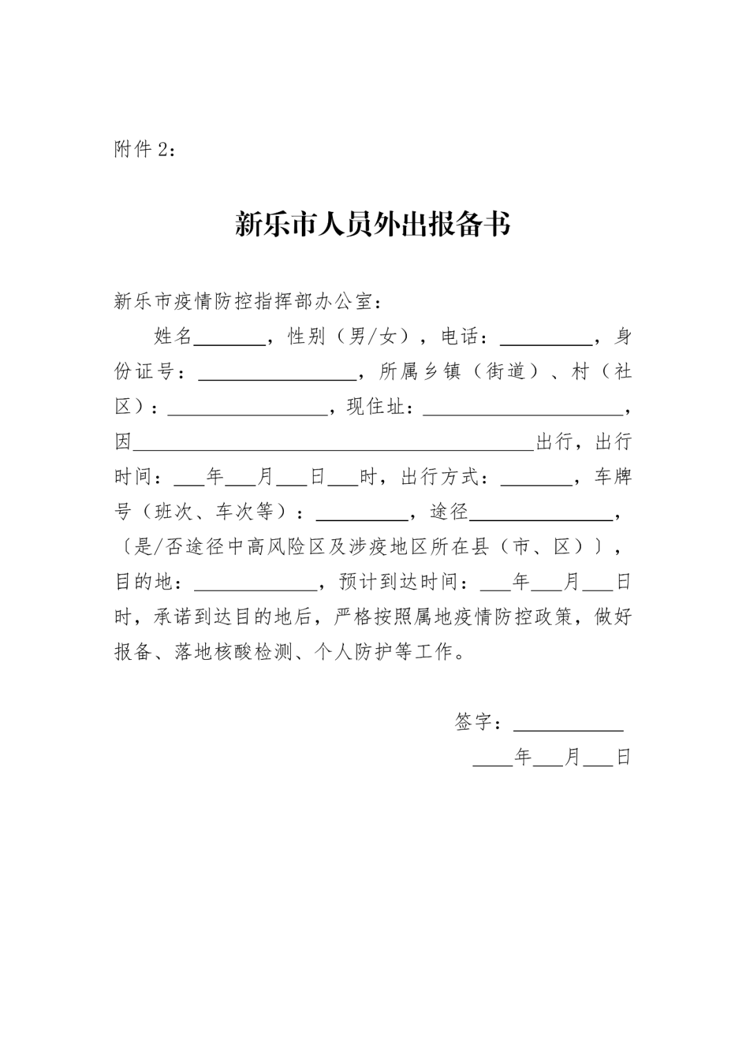 四、其他因故滞留人员。持24小时核酸阴性证明,填写承诺书和报备书后,由所在村委会(社区)开具离新返乡证明(联系人联系方式附后)。