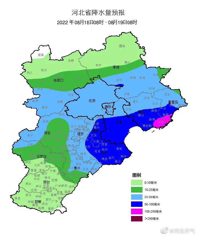 河北省气象台2022年08月18日11时发布天气预报