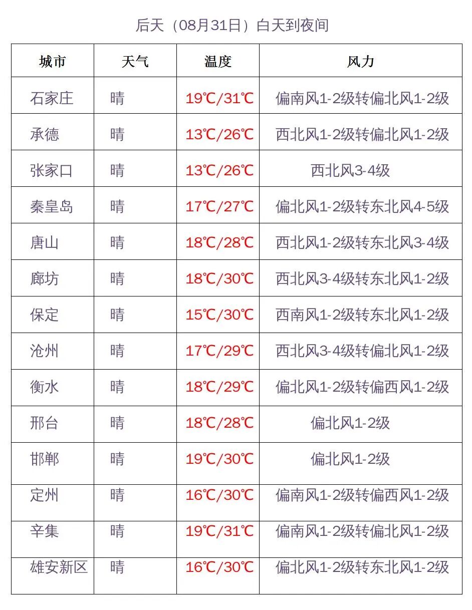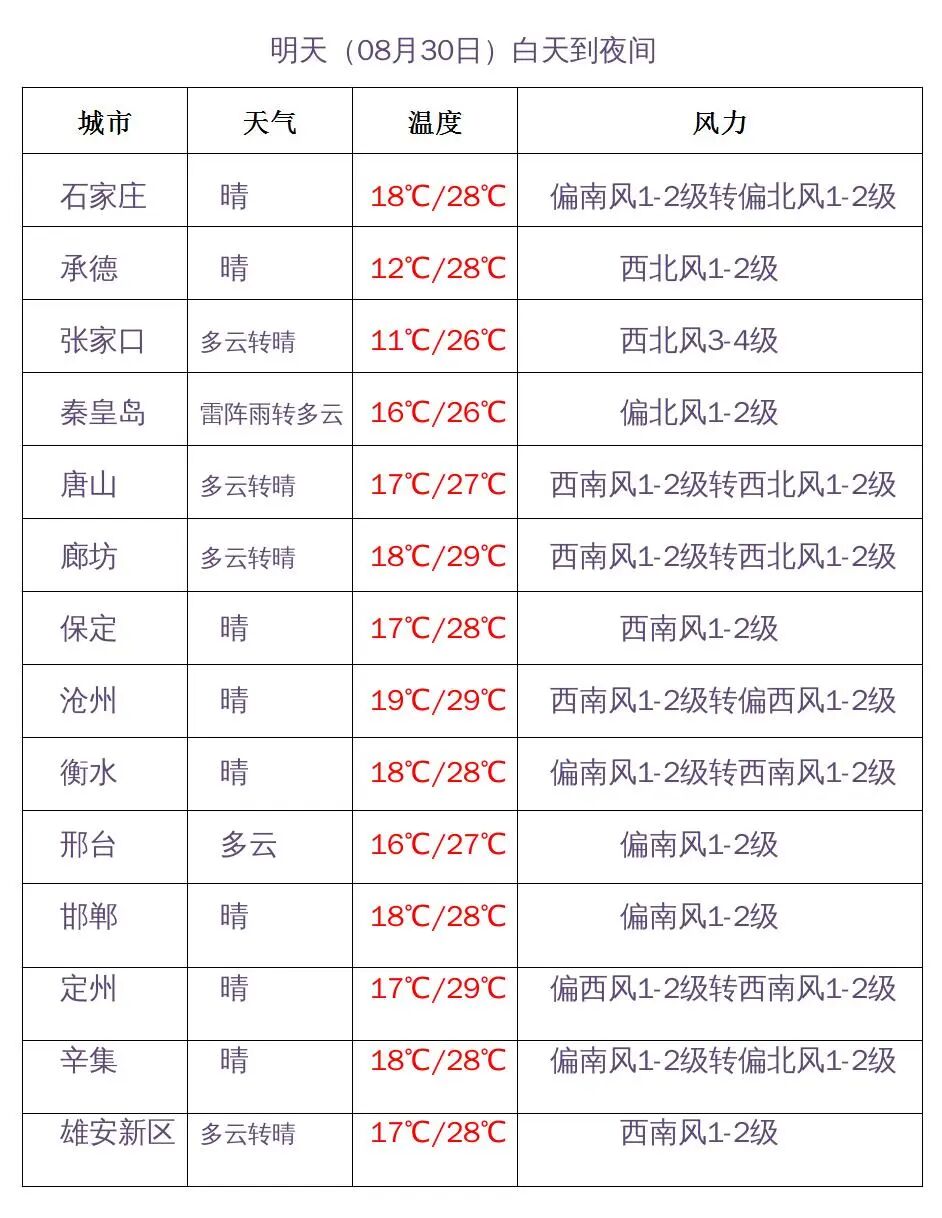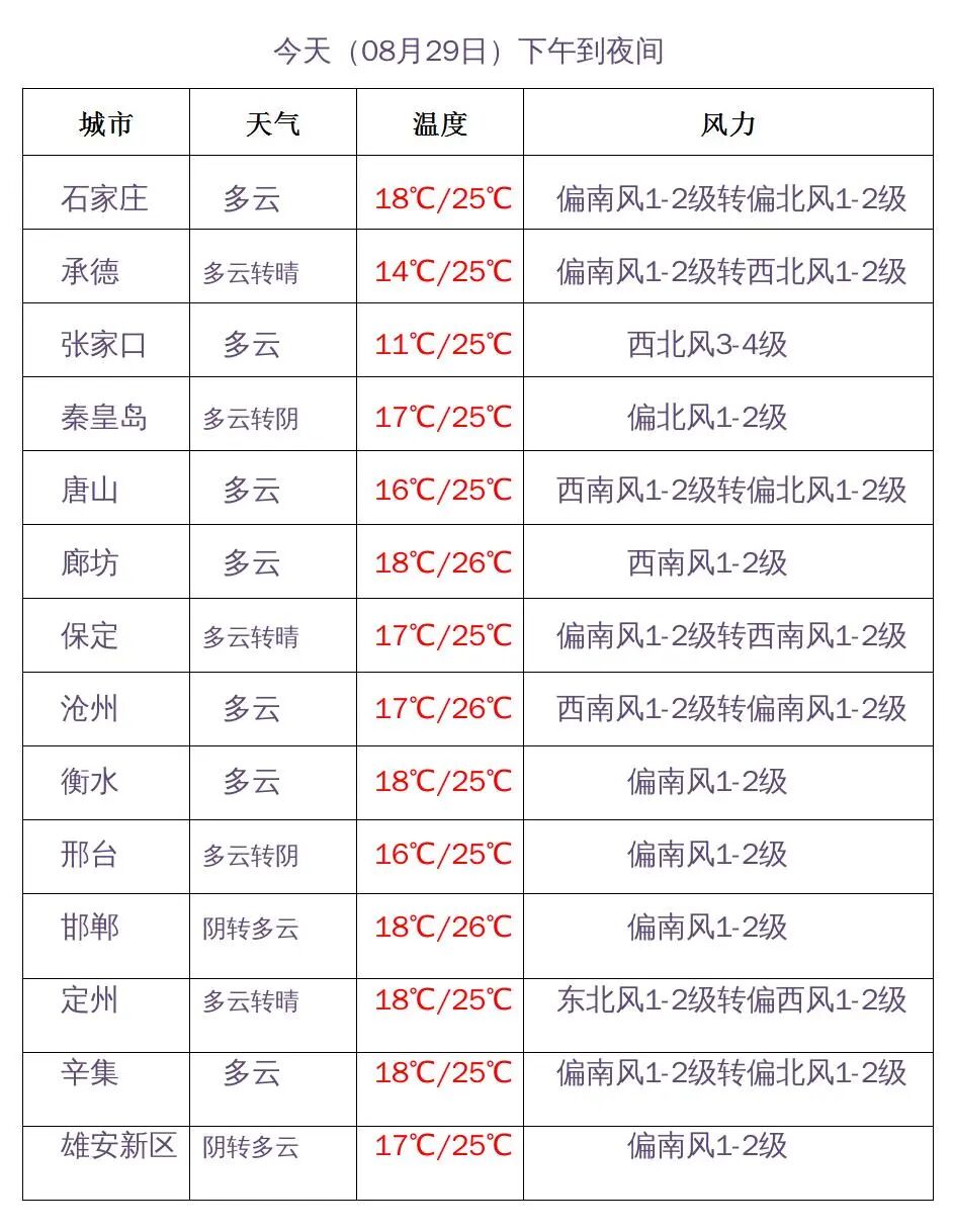 河北省主要城市预报