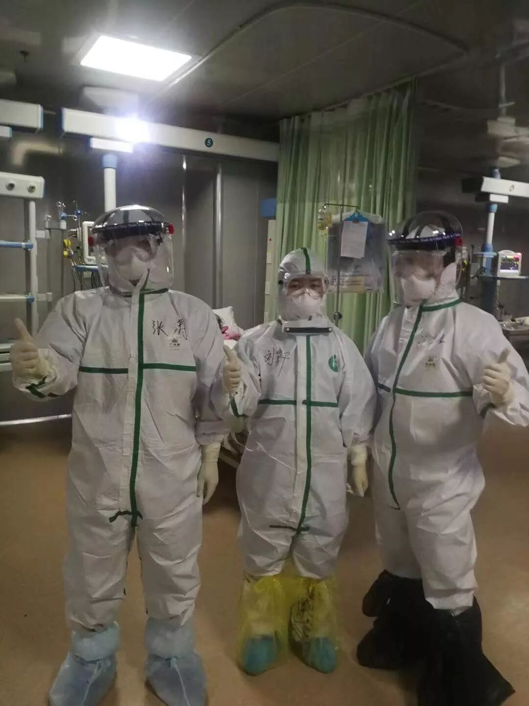 昨晚,一位94岁的老大爷需要穿刺,我想着我在这一组年龄最大,经验好歹比他们多一点,我就说我来吧。说实话,真的很难!由于长时间密不透气的全副武装,护目镜全是水雾,怎么办呢?硬着头皮穿吧。连着给老爷子穿了三针,真的,我内心都要崩溃了!我抬头不好意思的看着老大爷说:“老爷子,真对不起!……”我还没说完,老大爷笑着用当地方言对我说了一串什么话,我没听懂,但最后两个字,我却是真切地听懂了,他说的是:“加油!”当时我的眼泪刷地就流下来了。我们每个人的防护服上都写着“武汉加油!”,可是这个时候老大爷的一句“加油!”却让我倍感沉重,无比汗颜!