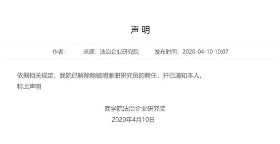 △西南政法大学商学院已解除犯罪嫌疑人鲍某兼职研究员的聘任