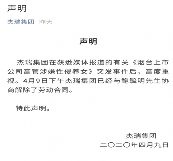 (4)犯罪嫌疑人鲍某先后被杰瑞集团和西南政法大学解除劳动合同与兼职研究员的聘任,并已辞去中兴通讯股份有限公司独立非执行董事及其在董事会各专业委员会中的一切职务。