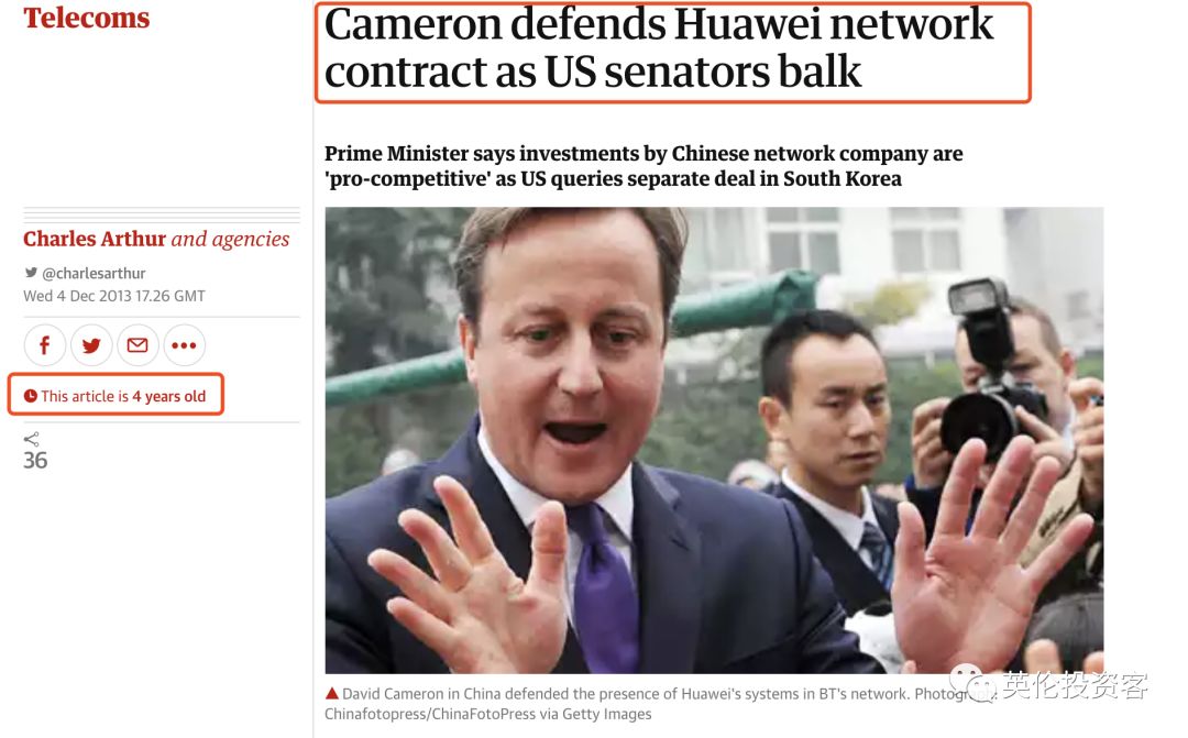 卫报2013年旧闻:不顾美国参议院反对,卡梅伦为华为辩护