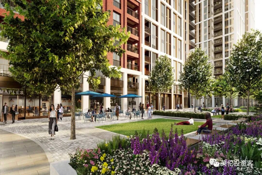 而在住宅楼之间,园林式公园和社区街道交织,让住户可以在繁忙的伦敦一区中体验到闹中取静,却又不失现代城市生活所带来的便利。