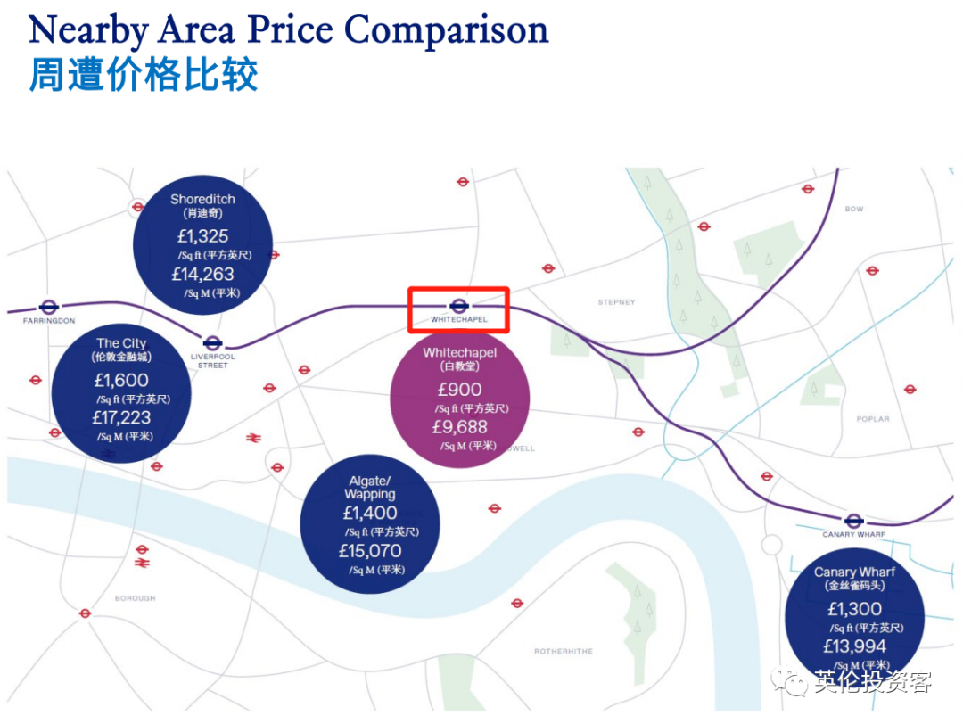 从位置来看,项目的亮点在于步行15分钟到达老金融城,地铁四通八达到达伦敦各地。