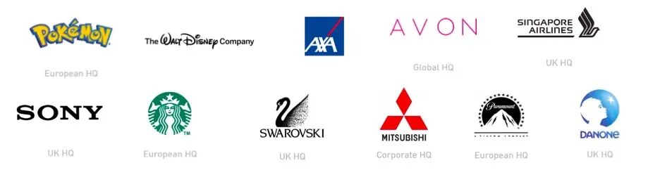 如下图所示,包括索尼、迪士尼、AXA、星巴克、施华洛世奇、三菱等公司,都把总部设在了Chiswick Business Park (奇西克商务园区)。