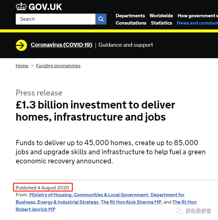 关于资金的分配,英国政府也在官网公布了其中9亿英镑资金的去向,并罗列出主要受益地区和重点项目。