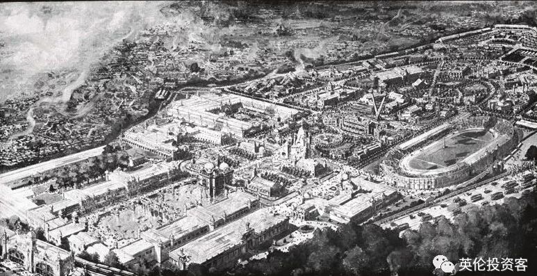 左边是英法博览会,右边是举行奥运会的白城体育场,1908