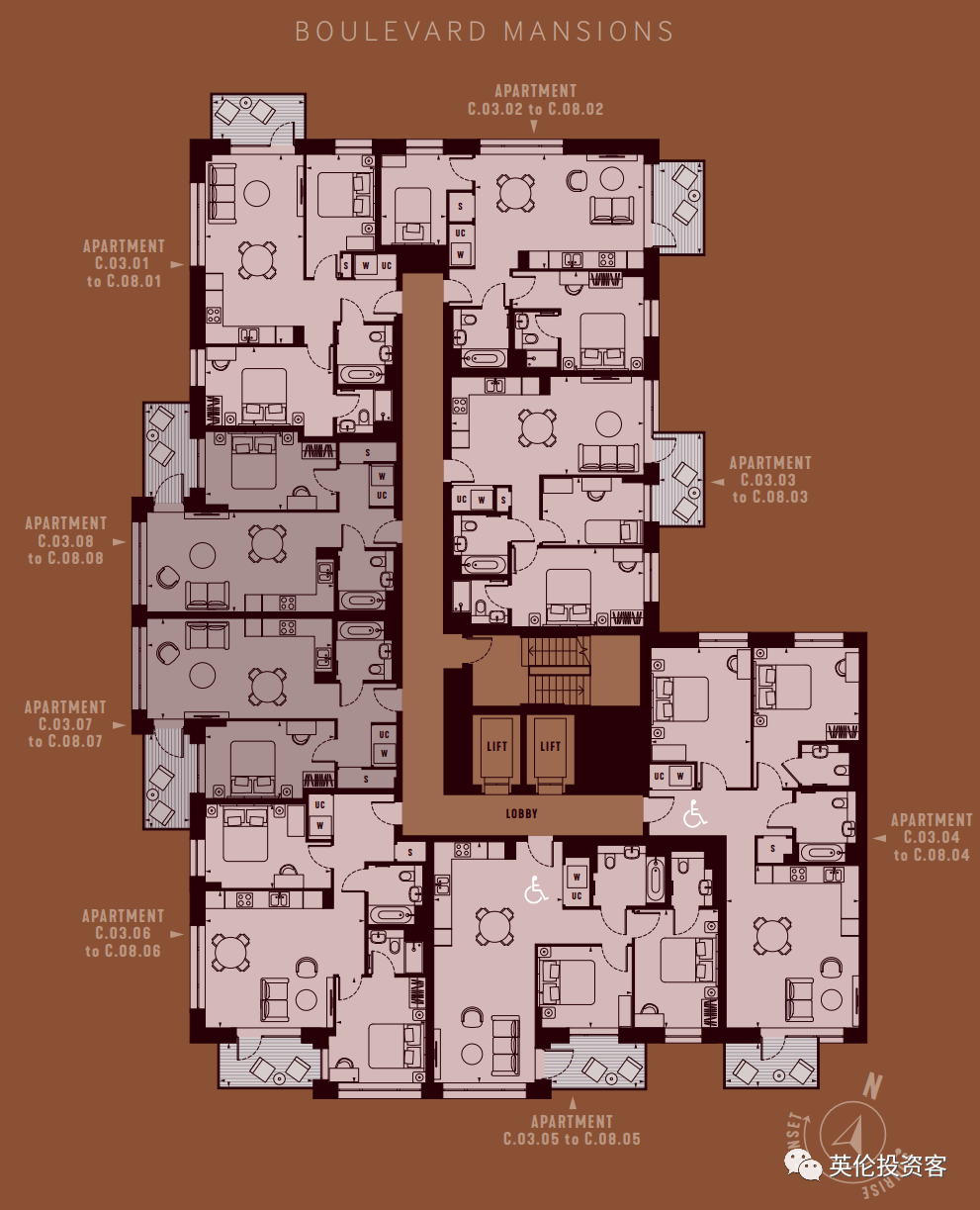 另一种就是Boulevard Mansions,共8层,户型选择更多,但同样只有一居室和两居室。