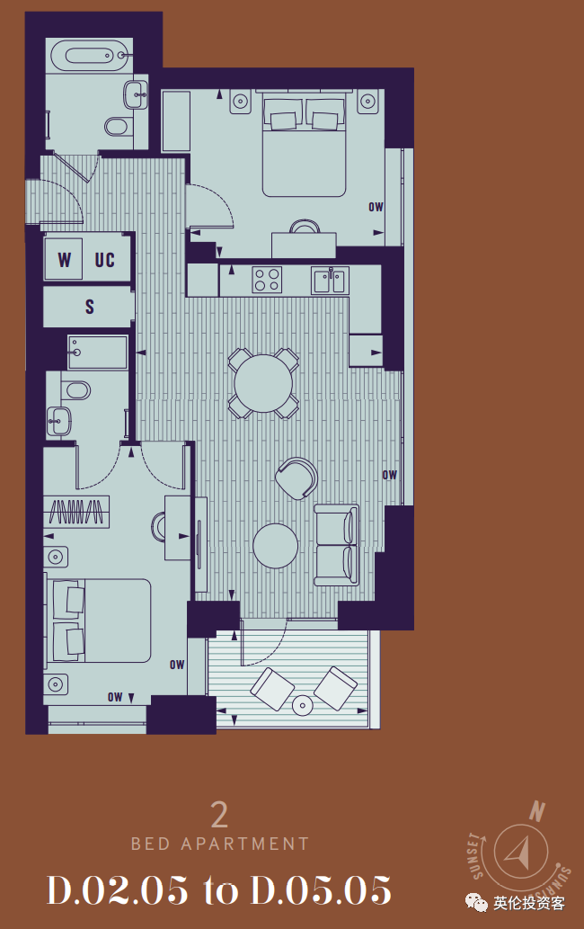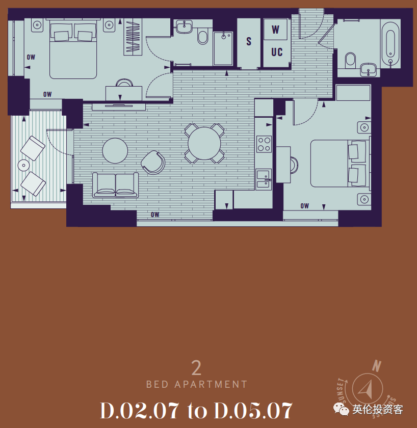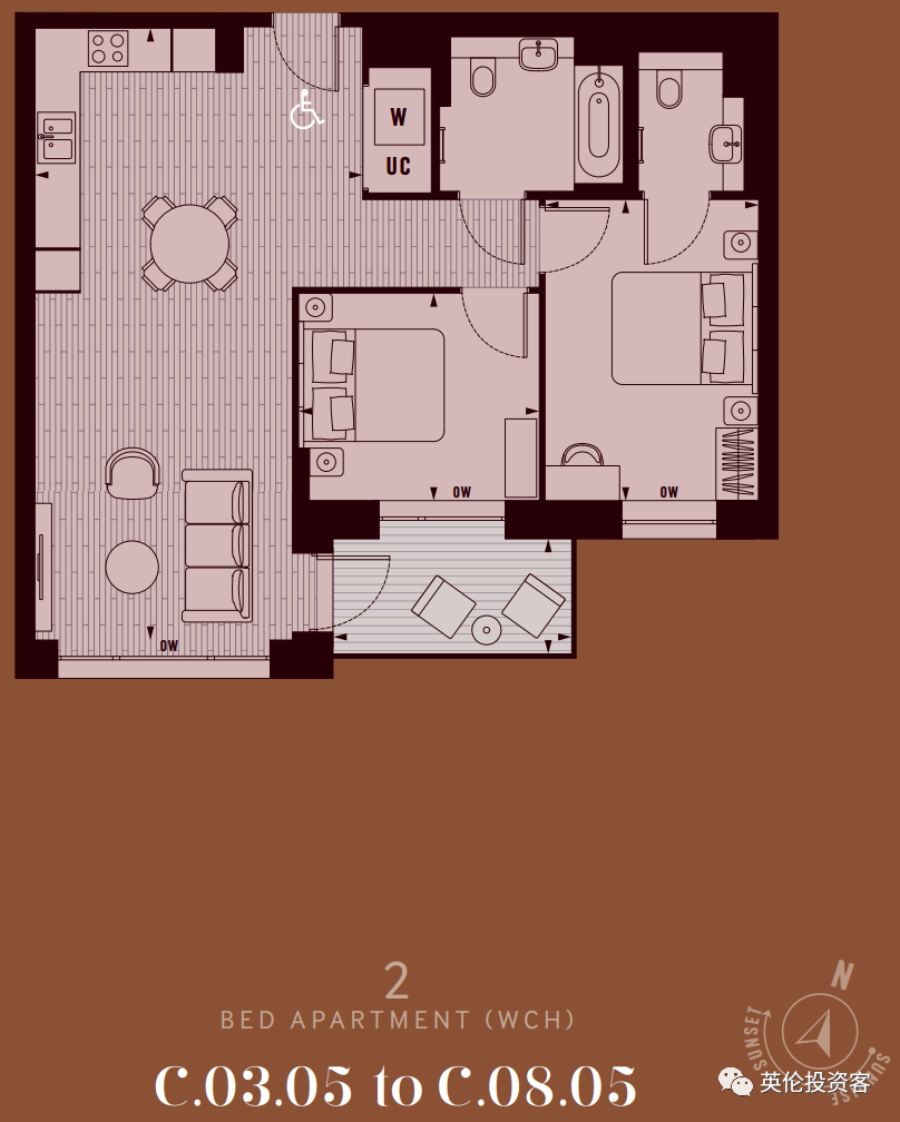 两室一厅(推荐户型):87.3万英镑(785.7万人民币),75.2平米,单价10.4万rmb每平米