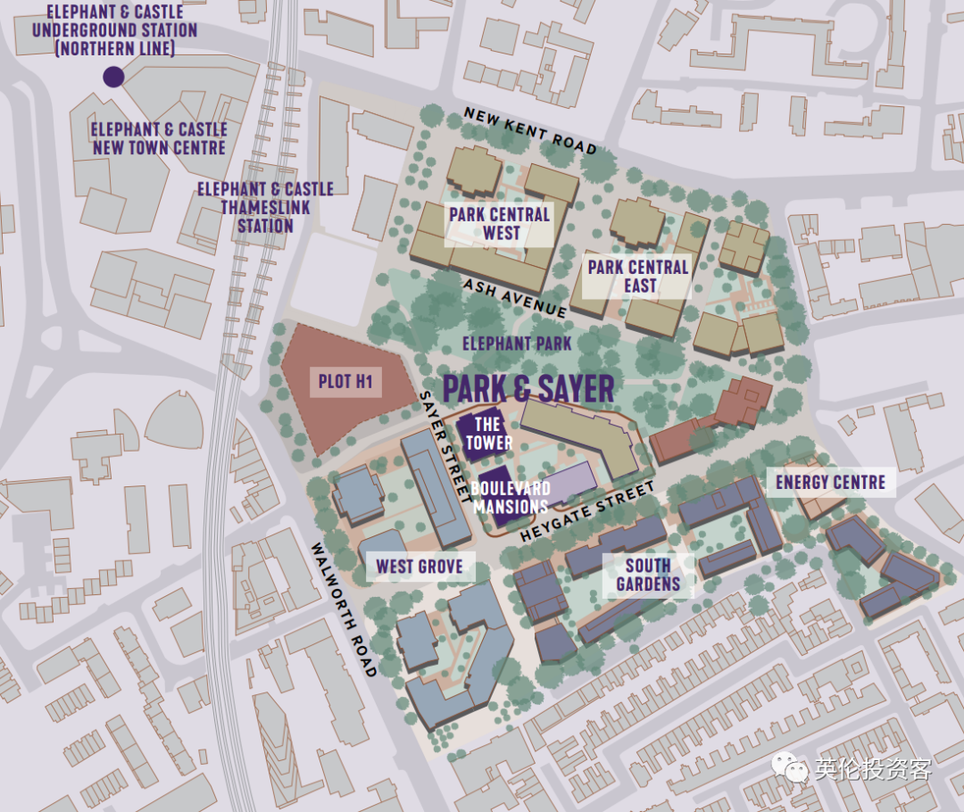 项目名为象堡花园(Elephant Park),最新一期名为Park&Sayer,2024年Q3交房,产权250年。