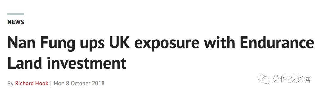 南丰入主Endurance Land,是中港资本近两年来第一次用收购开发商的方式进入英国市场。