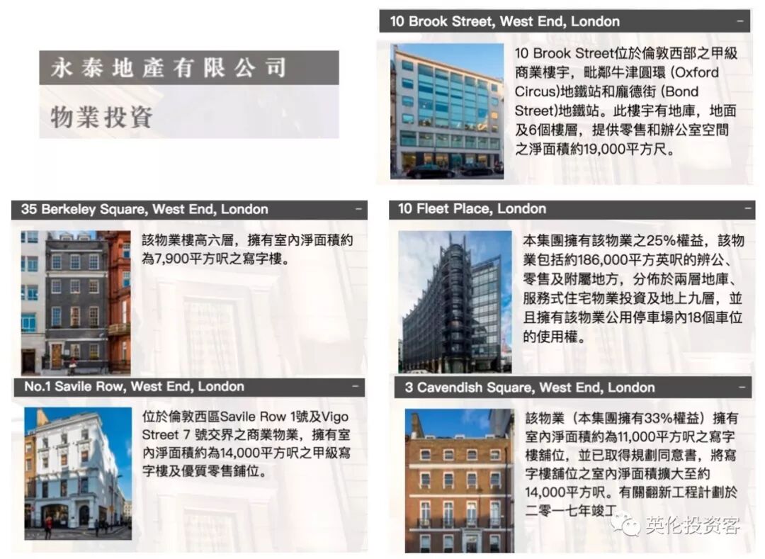 香港人对伦敦的爱无处不在,低调的永泰地产(永泰制衣厂)看上去名不见经传,但实际上也已经在伦敦买了5栋甲级写字楼,正是香港“反殖民”伦敦的完美样本。