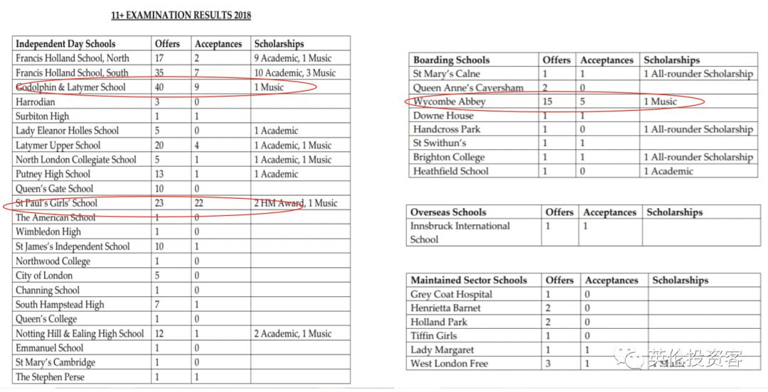 在ButeHouse预备小学的网站上显示:2018年有63个毕业生参加了11+考试,其中22个去了St Paul’s Girls’(圣保罗女中),5个去了Wycombe Abbey(威雅公学),9个去了Godolphin & Latymer。