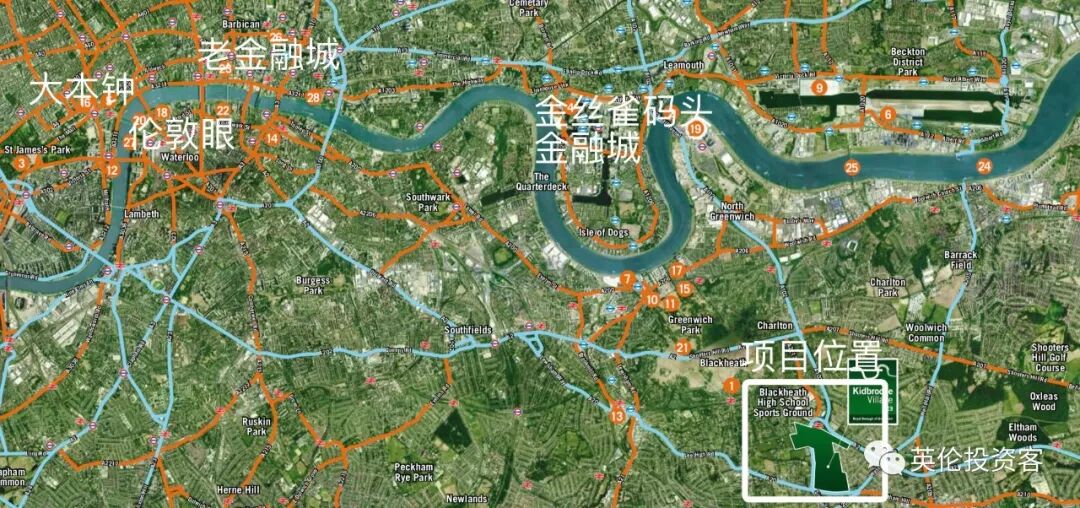 • 伦敦东南三区,离金丝雀码头金融城不远,宜自住养娃,火车15分钟到伦敦桥