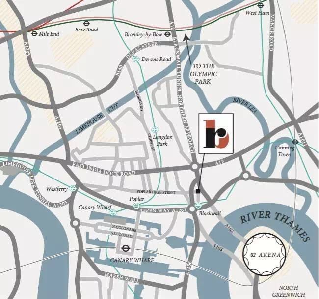 • 位于东伦敦Bromley-by-Bow地区Lea河畔,二区与三区交界处,是伦敦发展最快的地区。步行6分钟可达Bromley by Bow地铁站(District线和Hammersmith & City线),乘地铁6分钟可达Stratford,12分钟达金丝雀码头,10分钟达金融城。