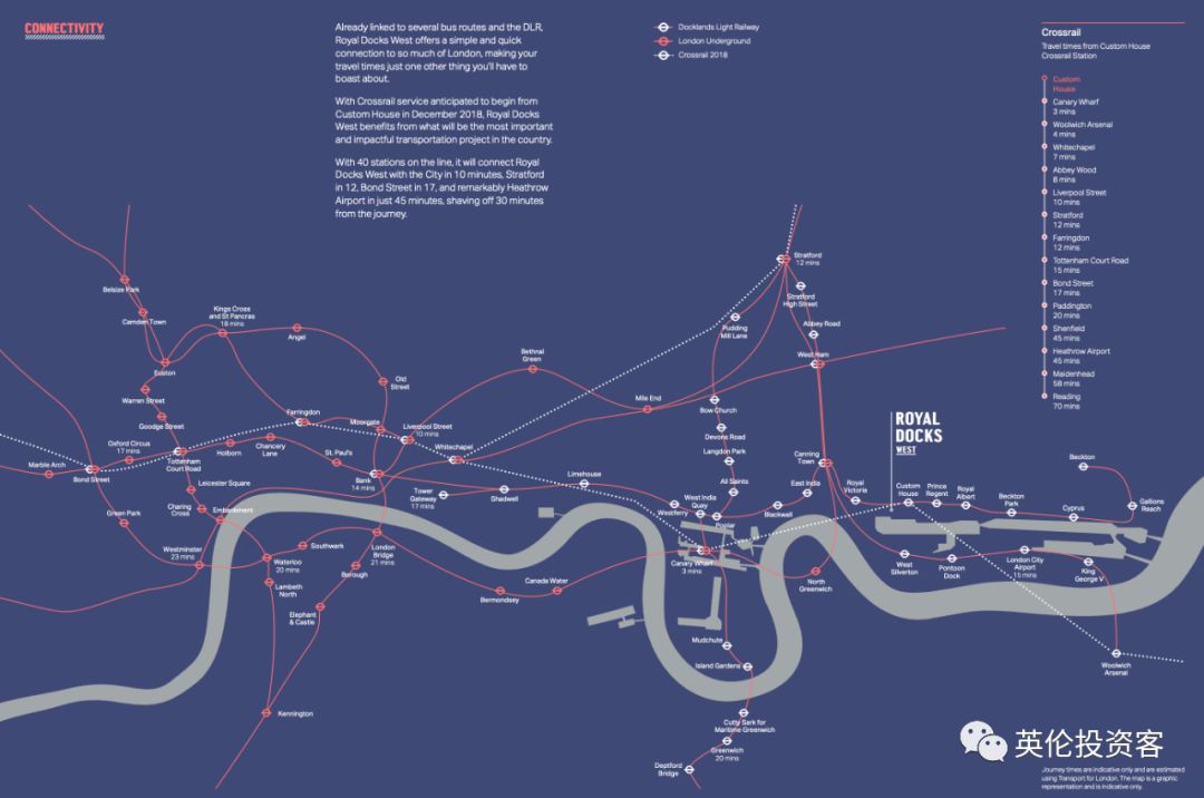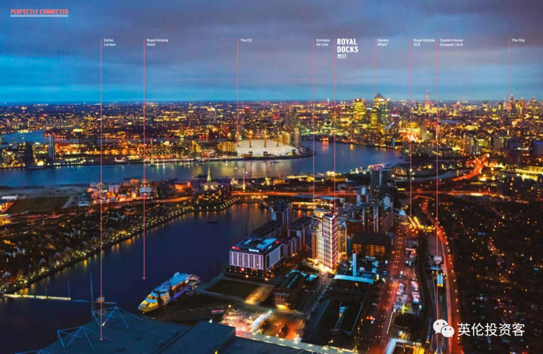 • 处于金丝雀码头(Canary Wharf)东向延长线中,伦敦第三个金融商务区、斥资数⼗亿英镑的伦敦皇家码头区(Royal Docks)整体升级改造项⽬中的重要一环