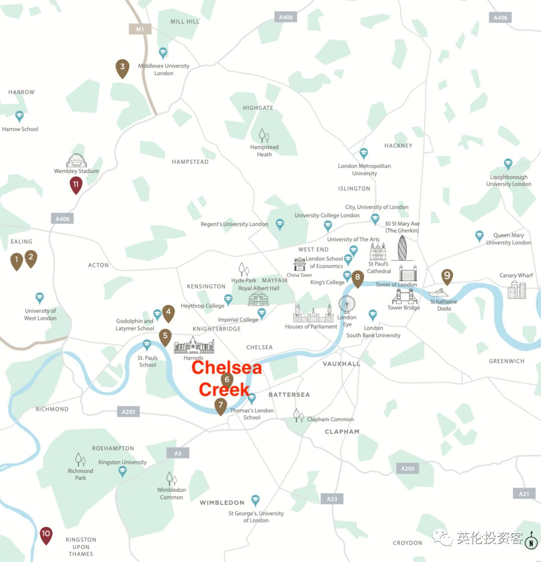 • 位于伦敦二区,紧邻泰晤士河南岸,拥有英国大奖级别的河边景致,广阔的花园、巴特西区域的绿地休闲区以及完善的社区配套让河岸巴特西成为自住的极佳选择,社区周边有托儿所,预科学校和初中,发达的公共交通让您轻松抵达伦敦各大大学与学院