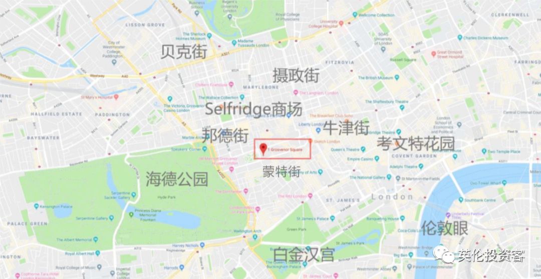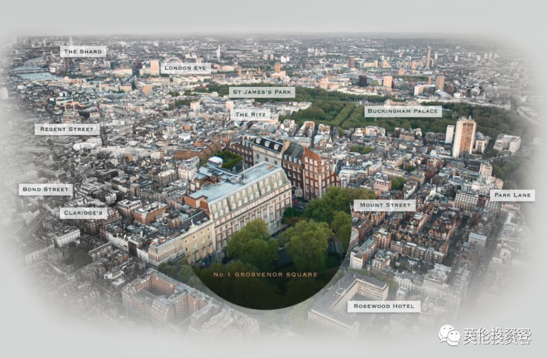 • 位于高冷的Mayfair(梅菲尔)邮编是W1,俯瞰伦敦第二大绿地广场Grosvenor Square(格罗夫纳广场),被Mount Street蒙特街、Bond Street邦德街、Regent Street摄政街包围;从项目出发往西走几步就能到达海德公园,往南走10分钟就能到达女王居住的白金汉宫;周边遍布米其林餐厅、艺术画廊、超豪华酒店。